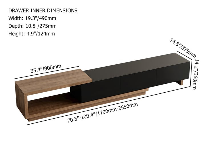 اندازه: طول 179 متغیر تا 250 - ارتفاع 36 - عمق 37